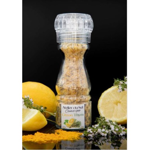 Le Sel de Camargue "Citron Thym" révèle toute la fraîcheur et le parfum du Sud de la France. Récolté à Aigues-Mortes, ce sel naturel non traité, sans anti-agglomérants, est enrichi de citron, thym et curcuma pour un mélange aromatique subtil et savoureux.